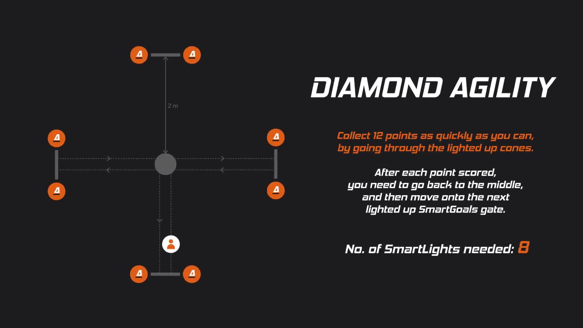 Count down 12 points as quickly as you can, by going through the lighted up cones. After each point scored, you need to go back to the middle, and then move onto the next target.